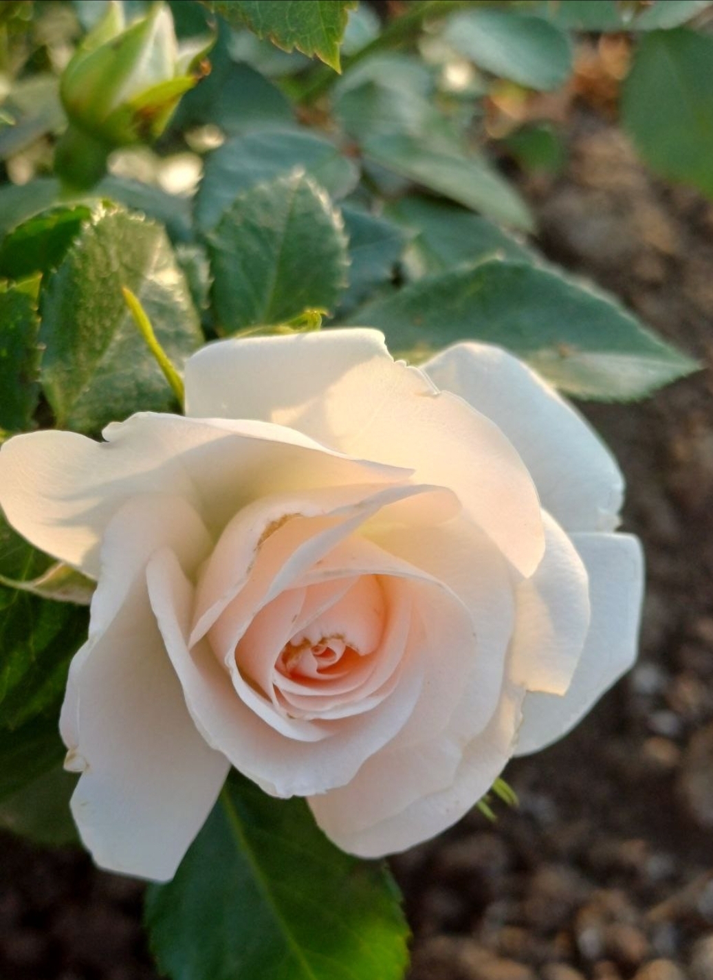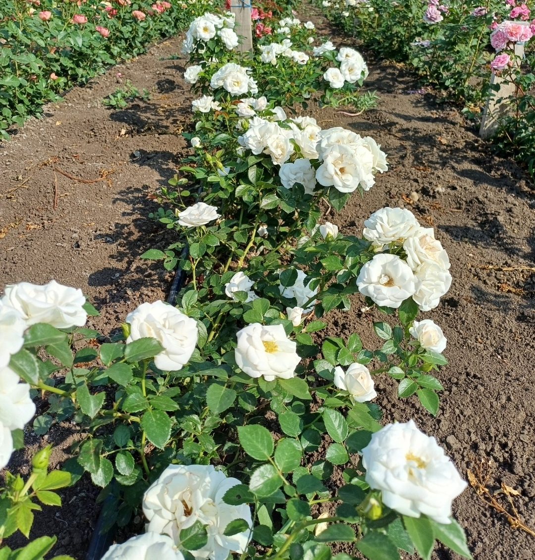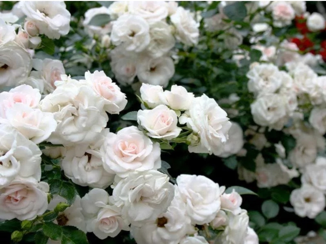 Класс роз: современные садовые розыГруппа роз: флорибундаЦветы белоснежные, но в холодную погоду серединка становится кремово-розовая. Цветок чашевидный, густомахровый, в диаметре 4 – 6 см. Цветки появляются на стебле от 5 до10 шт.