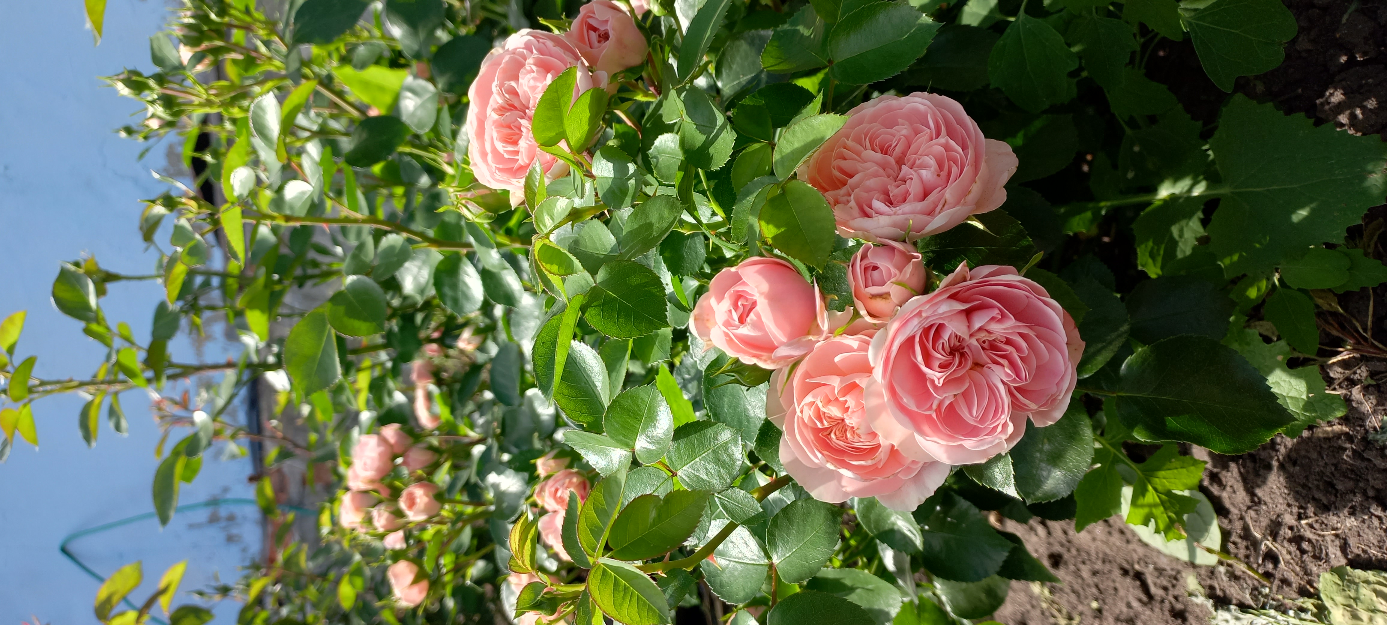 Цветок: нежно-розовый с лососевым оттенком, розетковидный до квадратного, махровый, 50 - 60 лепестков в одном цветке, диаметр цветка 6 - 8 см.