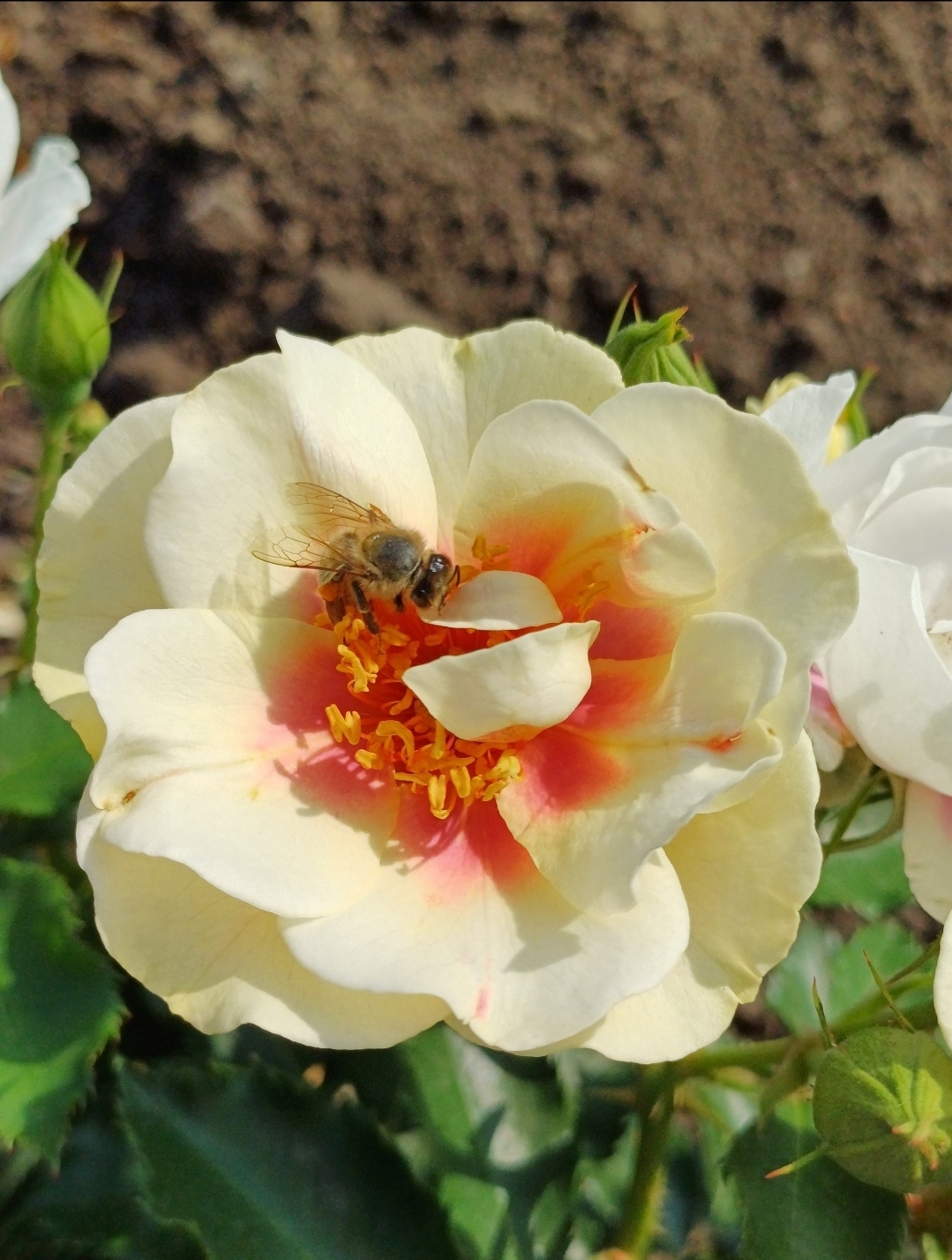 зона глаза клюквенного красного цвета подчёркивает основание каждого кремово-белого лепестка;